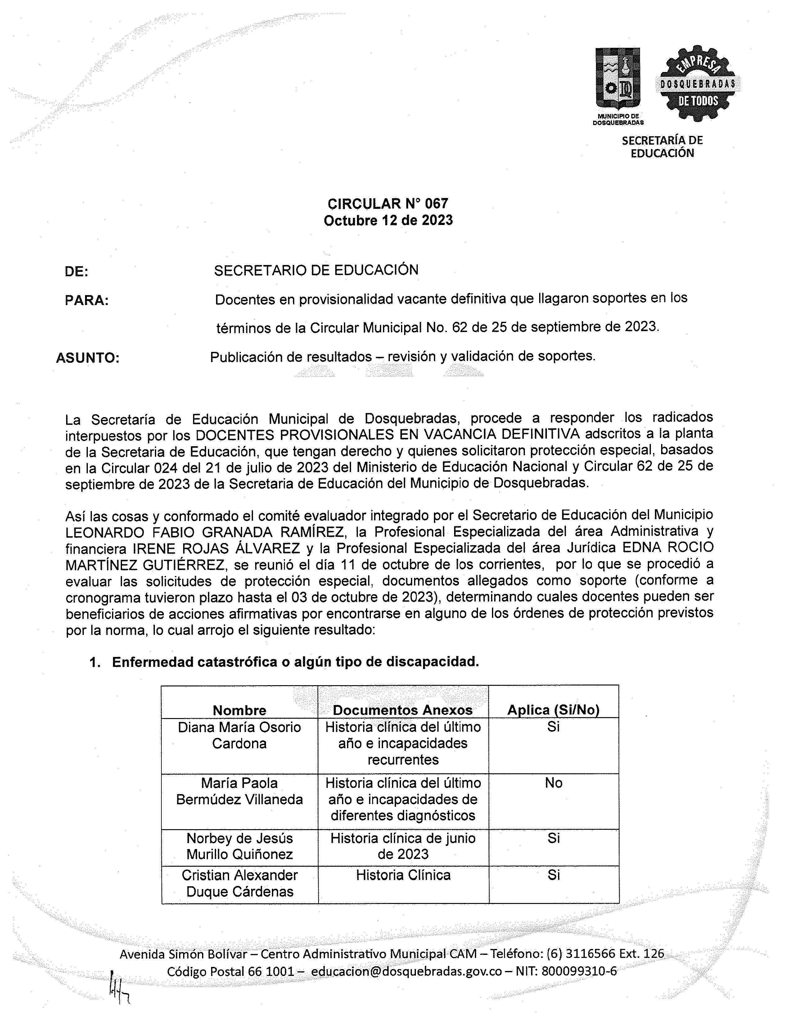 Contacto: educacion.atencionalciudadano@dosquebradas.gov.co